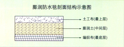 膨潤防水毯是一種專門用于人工湖泊水景、垃圾填埋場、地下車庫、樓頂花園、水池、油庫及化學品堆場等防滲漏的土工合成材料,它是由高膨脹性的鈉基膨潤土填充在特制的復合土工布和無紡布之間,用針刺法制成的膨潤土防滲墊可形成許多小的纖維空間,是膨潤土顆粒不能像一個方向流動,遇水時在墊內(nèi)形成均勻高密度的膠狀防水層,有效的防止水的滲漏。